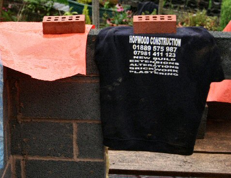 It is a case of rain stops play this week, no bricklaying has been done because of the British summer weather. |