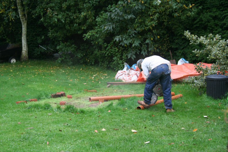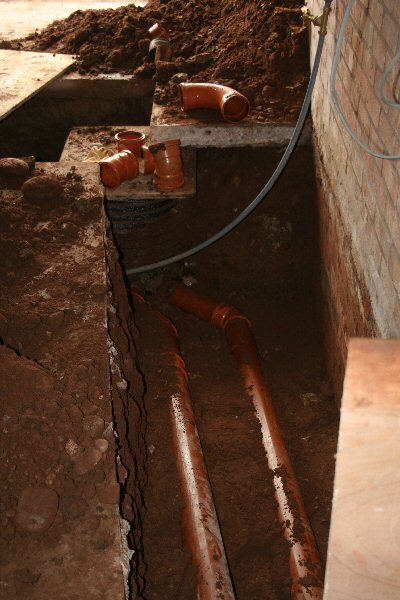 The final two connections to the main sewer manhole chamber