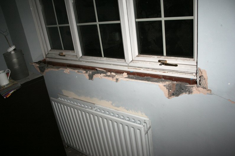 Bathroom window sill is removed