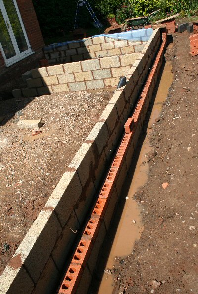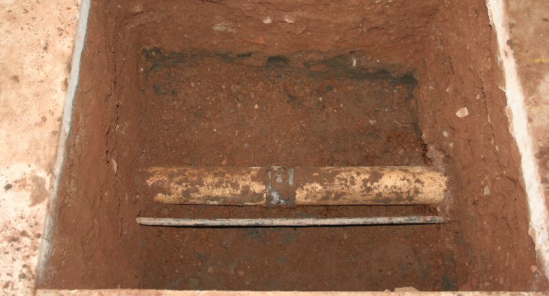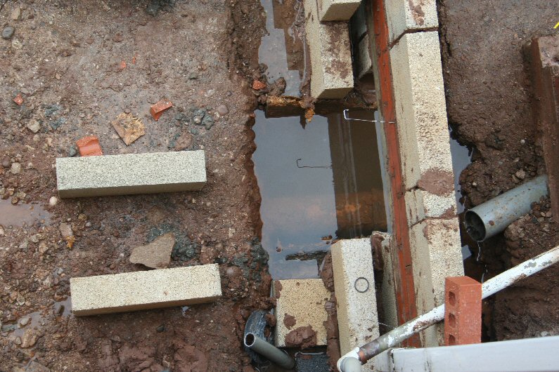 The sewer pipe and the mains water pipe
