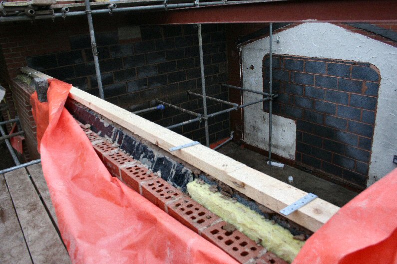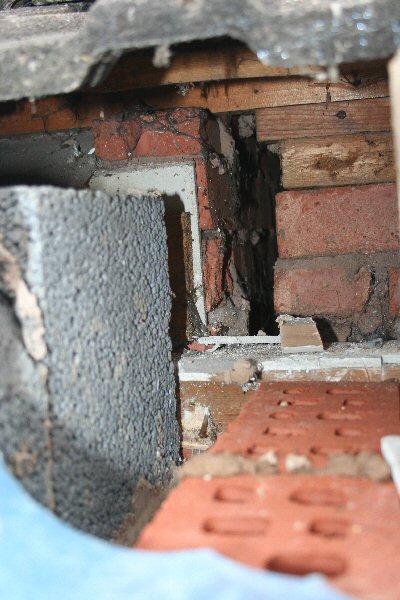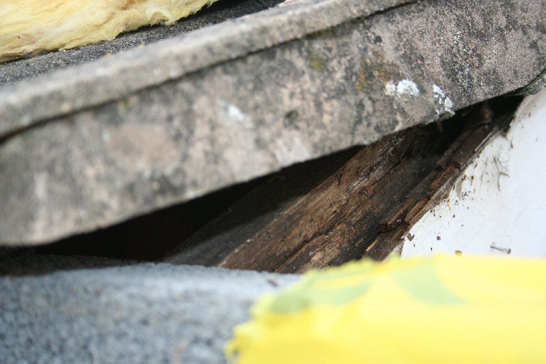 The old roof starts to be exposed