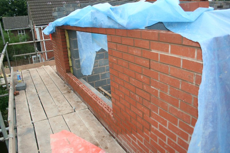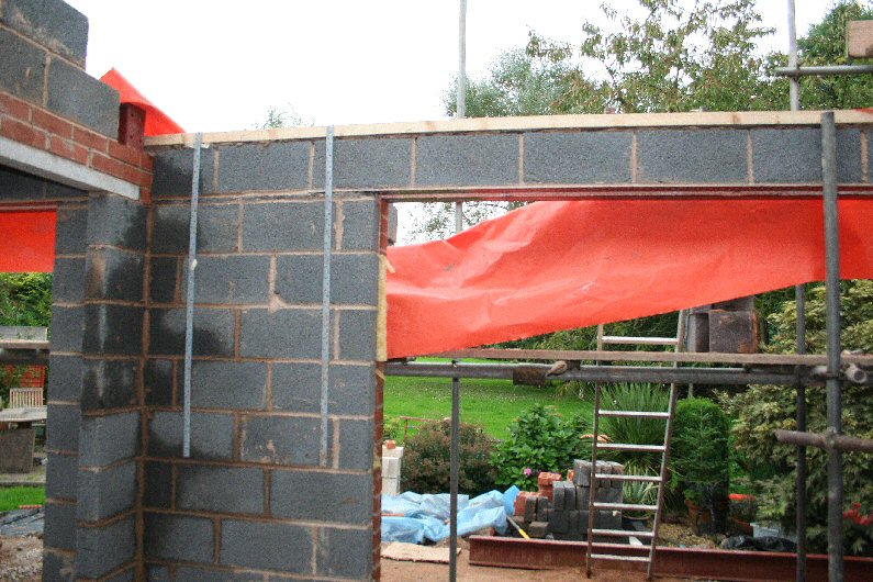 The single story roof is started